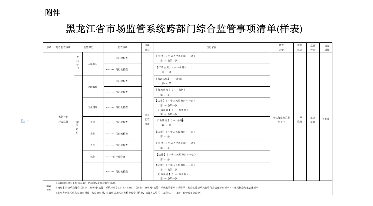 附件:黑龙江省市场监管系统跨部门综合监管事项清单(样表)
